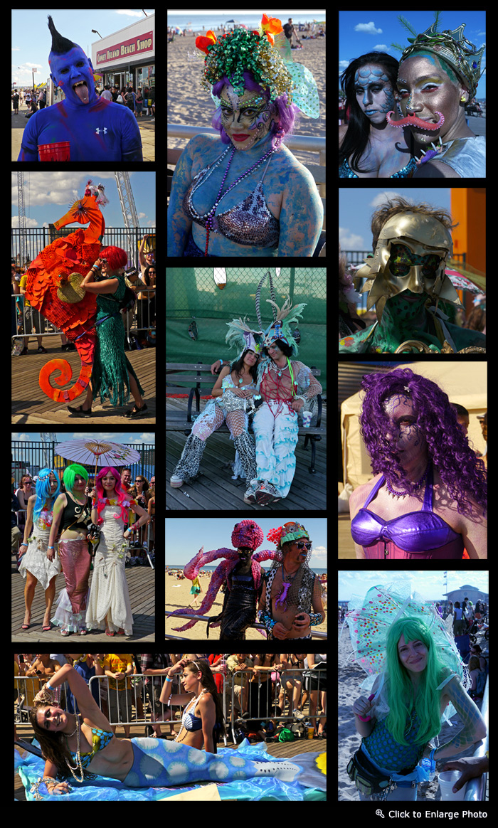 This is the 6th year I have attended and photographed the annual Mermaid Parade on the boardwalk by the ocean at Coney Island. Every year it is becoming larger and a little more difficult to negotiate through. I spent my time at the exit area for paraders, as you can see in my attached video. An entire city block is closed off, and with paraders milling about, it is much easier to mingle with and photograph parade participants. My favorite parade – highly recommended.