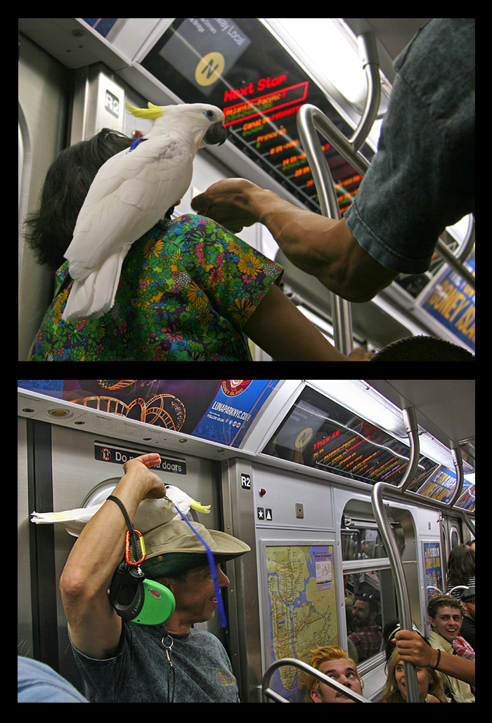 This was not my first encounter with someone who displayed exotic pets in the parks of New York City. In 2006, I featured a story and photos about a man with a small trio of exotic animals that he marketed as photo ops to passersby (see Snake Charmer here). I also once witnessed a large Albino Burmese Python, slithering along in Central Park (see here).
