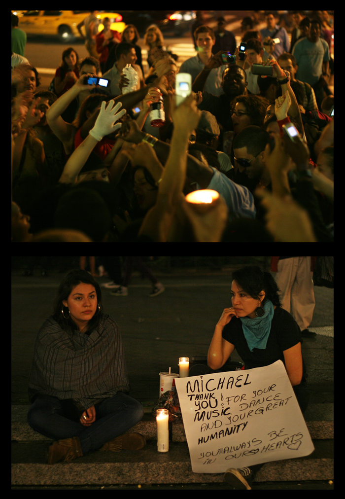 By now, most of the world knows that the King of Pop, Michael Jackson, died yesterday afternoon in Los Angeles. By yesterday evening in New York City, spontaneous memorial music jams and sing-alongs were everywhere.