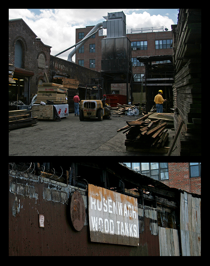 This location, at 87 North 9th Street at Wythe Avenue, a former stable, is the wood mill for the company where the planks are prepared using equipment dating back to the 1930s. The tanks themselves are assembled at the customer location.