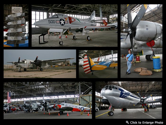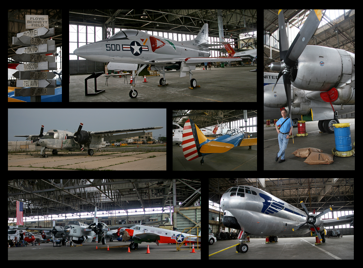The airfield also boasts a number of antique hangars. Hangar B houses a number of retired military planes – some can be boarded. (The photos in today’s collage were all taken in or immediately outside Hangar B.)