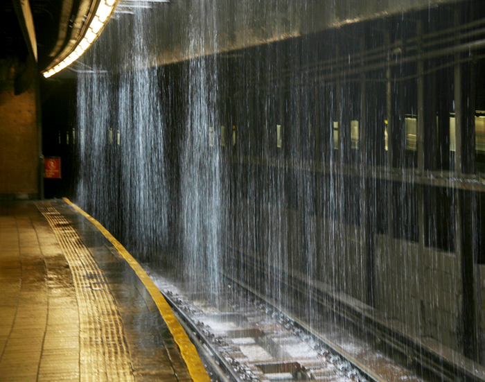 The train ride itself is uneventful. But at our final stop, I notice a man with a VERY wet umbrella – he confirms a torrential downpour outside. This provides a most amazing photo opportunity and, of course, a wet journey home. The streets are littered with downed tree branches.