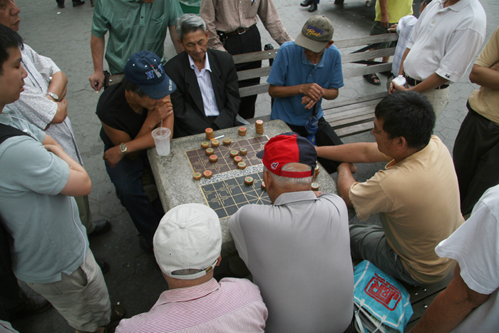 If you want a full cultural immersion experience, head to Columbus Park on a Sunday in Chinatown. This tiny park is Chinatown’s playground, home to a wide gamut of traditional Chinese recreational activities. Here, you will find people doing Tai Chi or practicing martial arts in the pavilion, playing folk music, displaying caged birds, singing Peking Opera, women playing mahjong, and hundreds of men engaged in numerous games of Xiangqi (Chinese or elephant chess). You may find cobblers, watch repairers, and fortune tellers. There is also a children’s playground and basketball courts. See more photos here.