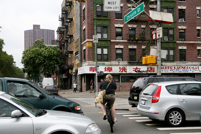 Literally crossing the street can be an undertaking – Delancey is a major thoroughfare with eight lanes extending from the Bowery to the Williamsburg Bridge, which crosses the East River to Brooklyn.