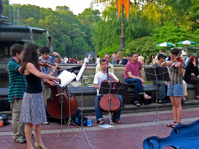 And then there are the streets and parks. I am constantly amazed at the quality and sophistication one can find right on the street. Many are students from the fine, aforementioned schools, which I imagine these in the photo are. This was shot at Bethesda Fountain in Central Park. I included a short video of them playing Mozart’s Eine Kleine Nachtmusik.