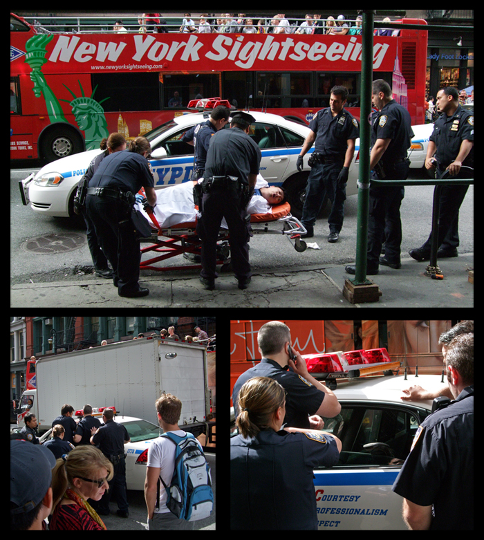 These sightseers certainly got to see the sights. Typically the offerings of TV programs such as Cops, residents and visitors of New York City often witness crimes, lunatic outbursts, and other acts requiring police intervention.