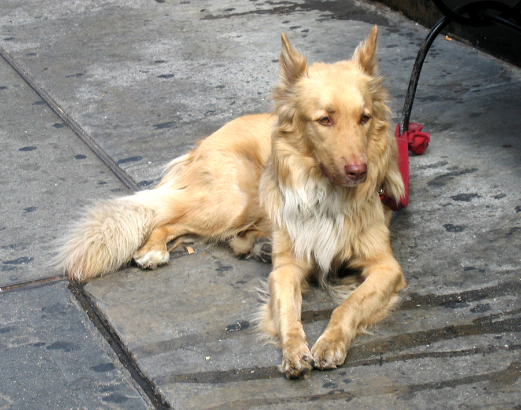 I know little of dogs, but apparently dogs and wolves have a common history and frequently mate. And there are established lines of wolf-dog hybrids. However, none of the images I have seen look like this dog, so I question the claim. I believe the idea of having a wolf-dog has a certain appeal and cachet amongst some, so perhaps there is some wishful thinking on the part of the owner. But the dog is still quite special. He seems to get no shortage of attention and is quite happy being himself…