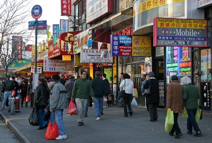 If you look at the census figures for a place like Flushing, Queens, you will find that, like many areas of New York, this is more of a small city or town than a neighborhood. Flushing has a population of 173,826 and a demographic makeup that is 43% Asian, 19% Hispanic, 6% black, and 39% white. The range of services is broad enough that you could easily never leave the neighborhood, and I imagine that many who live and work in Flushing do not leave often.