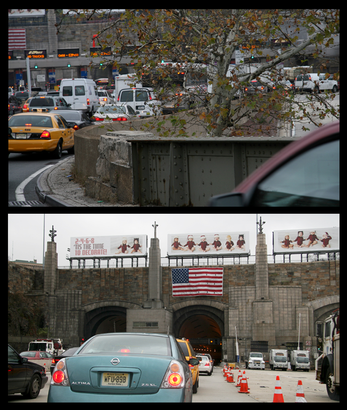 At some point in a New Yorker’s life, he/she will see and experience something that looks much like what we see in today’s photo – waiting at the entrance to the Lincoln Tunnel.