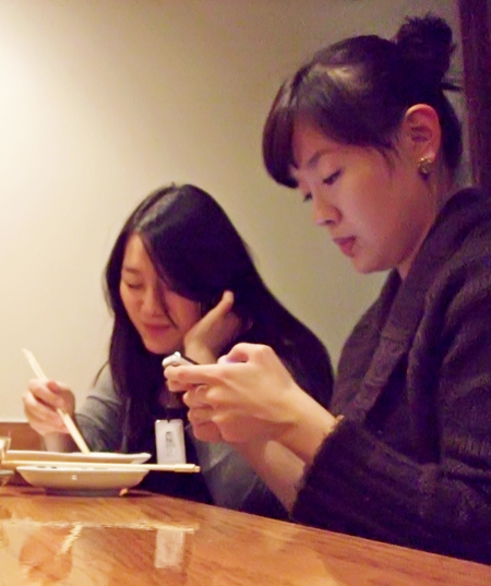 Personally, I try to limit cell phone conversations at dinner to receiving calls that are extremely important or where the caller would be difficult to contact. Like most things, this is a matter of degree and circumstance. People have answered landline phones during dinner for decades. In the case of these two women, they are both involved simultaneously and look quite happy sharing time together doing something they both enjoy. I’m sure the debate will rage on – whether what we have here is rude, antisocial, or perhaps a new form of social behavior: togetherlessness 🙂