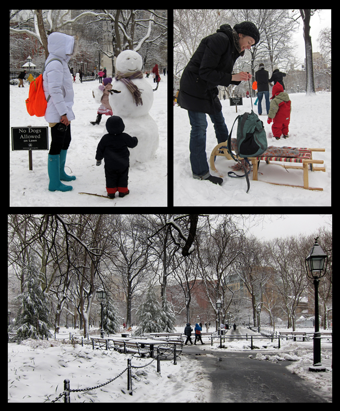 As I passed through Washington Square Park in the early morning after our recent heavy snowstorm, families had already been busy with their handiwork. Snowmen were everywhere to be found.