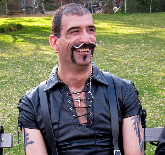 When you are a tried and true creative expert/creative or art director you don't have to write it on your card or say it out loud because your title proceeds you. To me this gents tattoos and peircings do just that. If you are that talented you can get serious face gear and still make 6 digits in the creative world.