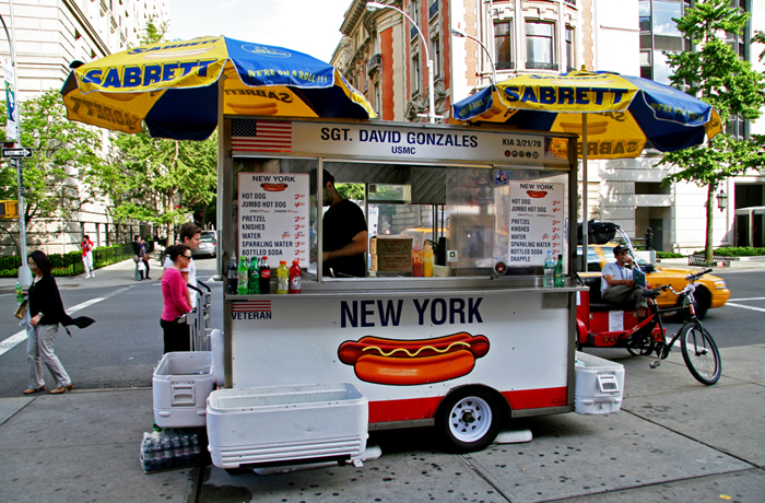 Hot dog vendors pay extraordinary fees to operate outside the Metropolitan Museum of Art. This is the premier spot in the entire city for street vending of hot dogs. Pasang Sherpa contracted for $642,702.19 per year to the New York City parks department for the right to sell hot dogs there (to close shortly after opening). Then, in 2007, disabled Vietnam veteran Dan Rossi set up shop, acting on an 1894 state law that allows disabled veterans to sell in restricted areas. For free. On a recent visit to the Metropolitan Museum steps (see story here), I spoke to Jose Cabrera, who works for Rossi. Jose is also a disabled vet, having served two tours in Iraq.