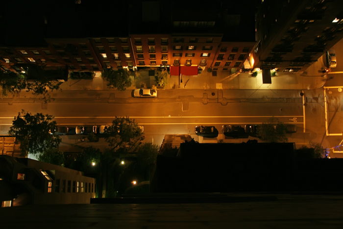Many urban jungle lovers (see Jungle Lovers and Urban Safari) relish exploration of the city, following the beaten paths or cutting their own swaths. But from time to time, there comes a desire to see the forest from the treetops. New York City affords a myriad of opportunities to do this via observation decks, bridges, and high-rise apartment and office buildings. Today’s photo is a rooftop view looking straight down from the 26th floor of a luxury high-rise apartment building in Greenwich Village.
