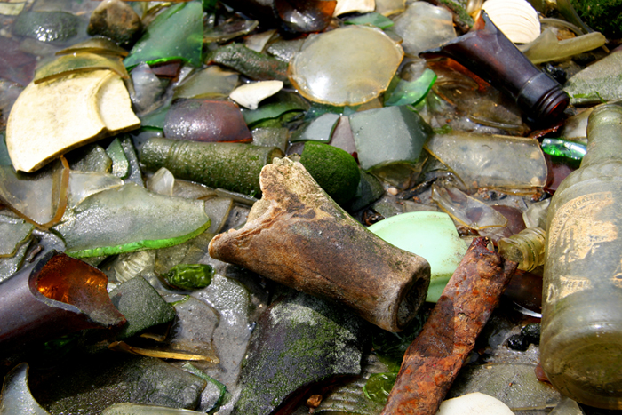 This is a great site you have.I like your offbeat discoveries and this trash beach is indeed bizarre. Like trash from 1936. That blue glass is rare.
