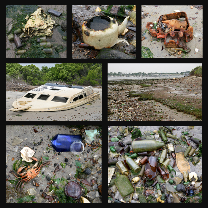 Once marshland, the area became slowly filled with trash and the landfill capped. The cap burst in the 1950’s, spewing articles from the early 20th century into the surrounding beach water.