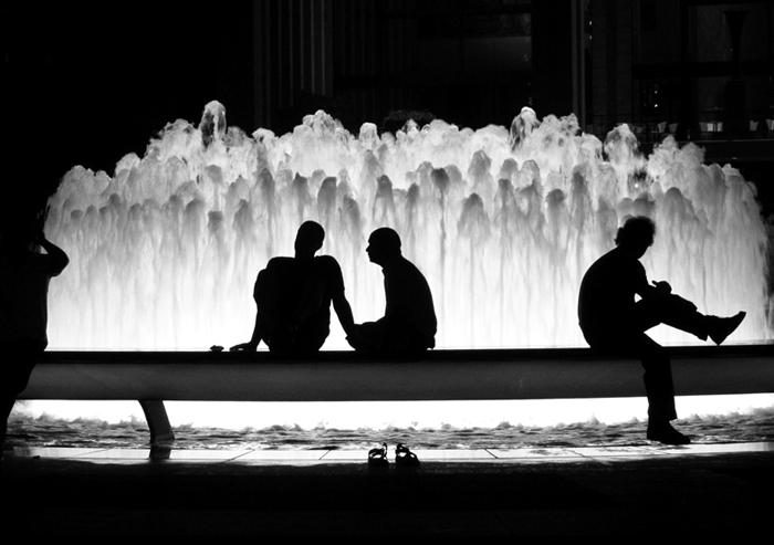 Love the silhouettes standing on this frozen sculpture of shining water.