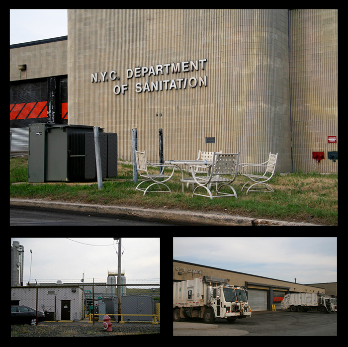 I can’t imagine a much better example of utility over aesthetic than what I saw recently on Muldoon Avenue in Staten Island: a metal table with chairs, unshaded, roadside, in the blistering heat in front of a NYC Department of Sanitation garage near the Fresh Kills landfill. The immediate surroundings are shown in the lower two photos. A online map street view shows this lawn as empty, so it appears this is a recent addition. Perfect for Labor Day weekend. Picnic, anyone?