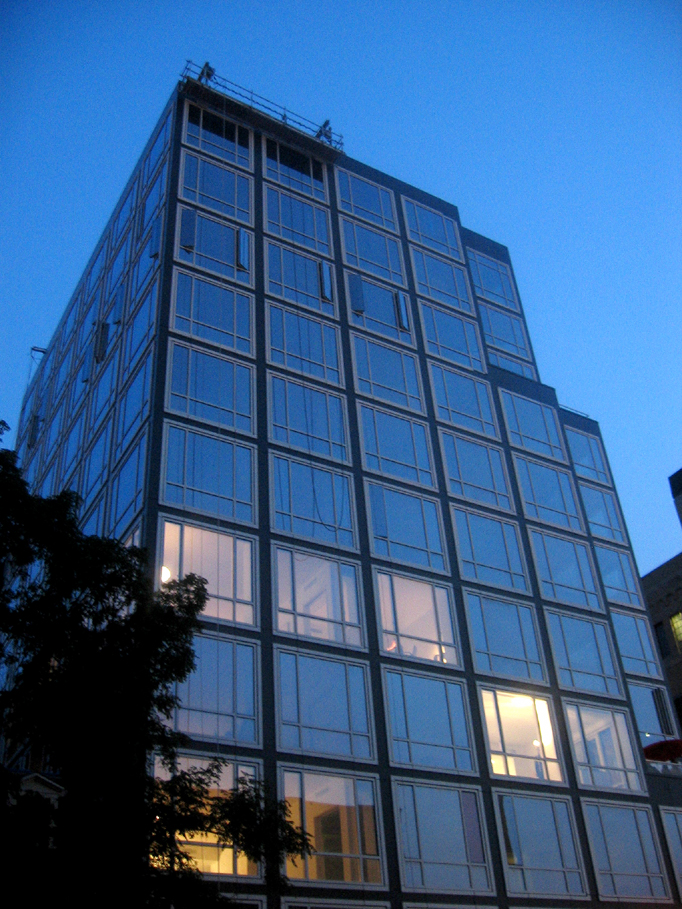 The Urban Glass House, at 330 Spring Street, is another “starchitect” project. It was designed by Philip Johnson and partner Alan Ritchie. Last night, a soiree was put on to celebrate the completion of Johnson’s last project (Johnson died in January of 2005, before completion).
