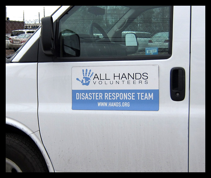 We were nearly at wit’s end until meeting Leticia Remauro at the volunteer table in Miller Field in Staten Island. Leticia, I was to learn later, is chair of Community Board 1 for that borough. When I told her of our cleaning dilemma, she wrote out her cell phone number as well as that of Jeremey Horan (a volunteer) on a card and handed it to me, telling me with the utmost confidence that Jeremy would handle any work that needed to be done. But Jeremey was associated with not just any volunteer group, of which there are numerous, typically loosely banded as a response to a crisis. No, the group who finally and thoroughly cleared the basement was All Hands Volunteers, a non-profit group doing work worldwide, and Jeremey was Director of Operation. There is too much good to be said about this group of men and women who are undaunted by any task, regardless of how unpleasant it may be, and, with energy that can only be described as indefatigable, apply themselves and carry through these thankless jobs to completion. Members come from all walks of life, most typically with day jobs, often driving in on weekends from out of state, just to help. I was privileged to meet Travis Gibson, US Field Operations, who personally came to inspect the project. Travis is one of a few full-time staff with the organization.