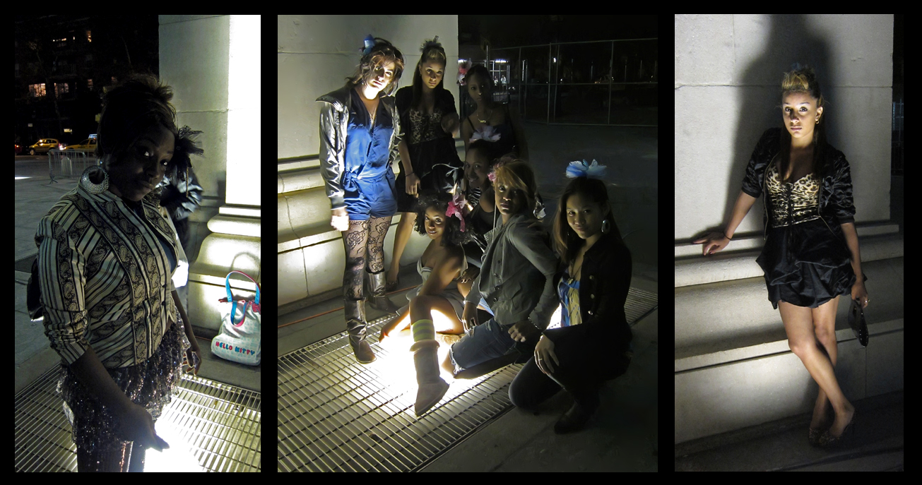 This group was the model entourage of Latesha Pryer, a designer from Jersey City, with her company Fashion Trash and clothing lines such as Dumpster Rags.