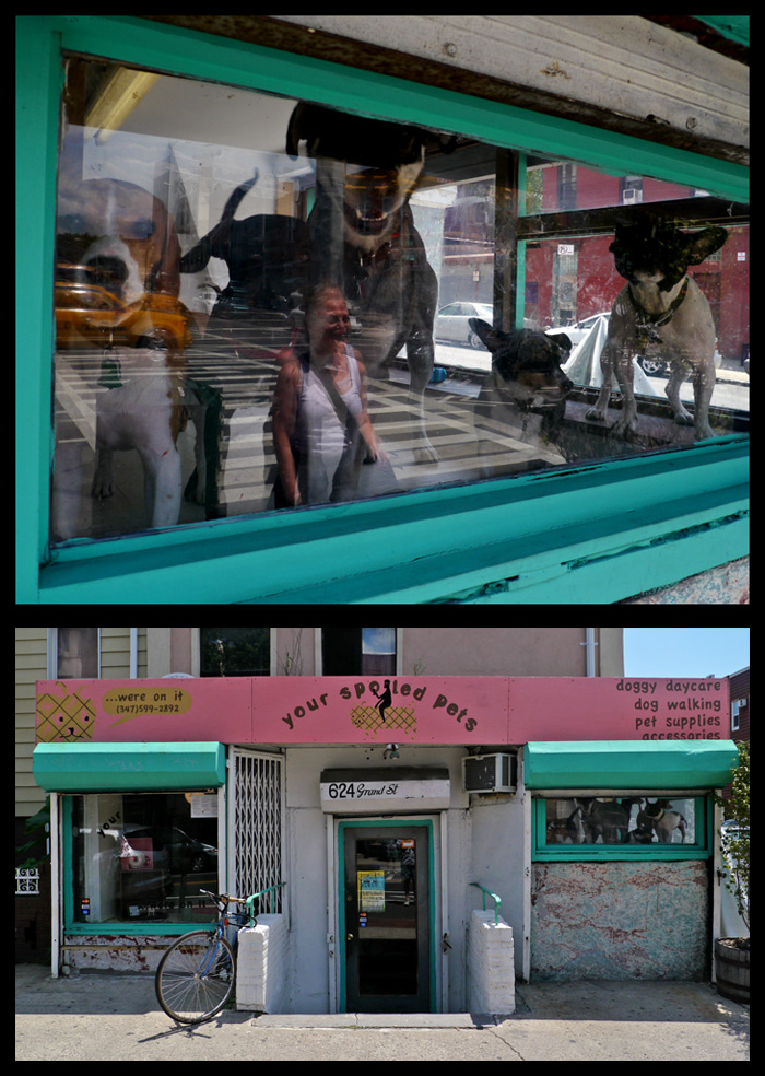 Recently, while visiting the Willburg Cafe in Williamsburg, Brooklyn, I spotted Your Spoiled Pets directly across Grand Street. I have no direct experience with this place, nor do I know anyone who has. However, online reviews are extraordinarily and uniformly high. The proverbial doggies in the window were quite exuberant, as dogs naturally are.