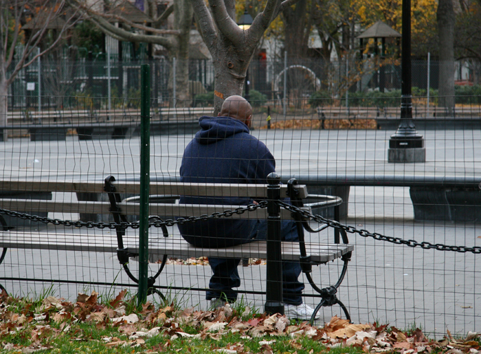 With luggage in hand, I always walk by or through Washington Square Park on Thanksgiving day as I journey to New England to visit my family. On a bleak, gray morning, I find it particularly saddening, as invariably I see people alone in a deserted space, knowing that for many, this will be how they spend their day.