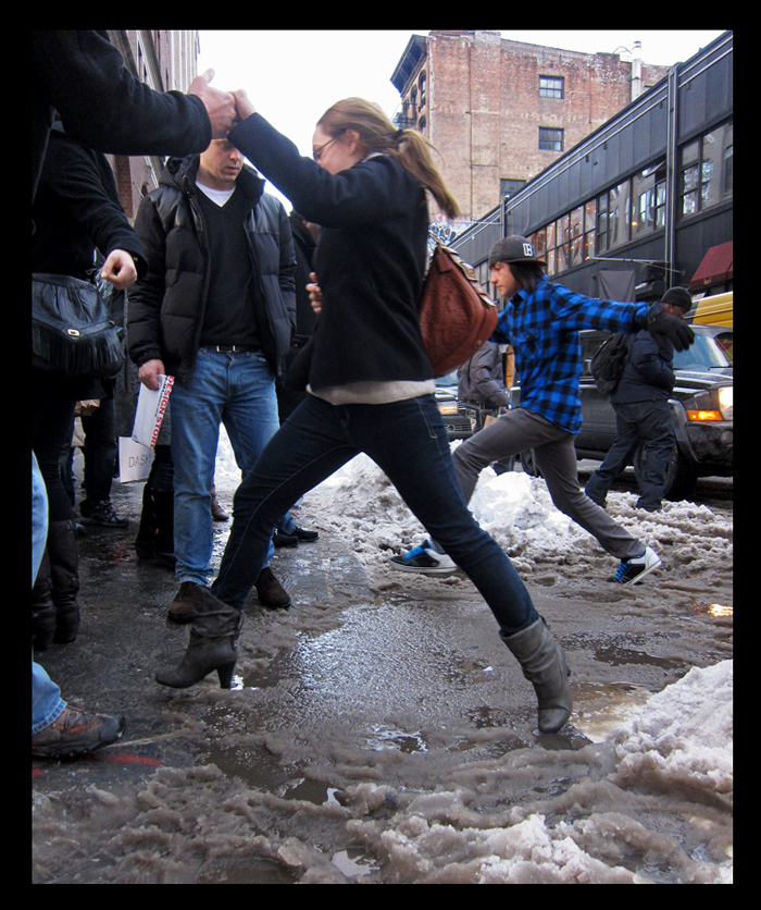 For someone living in New York City, there is a building and adopting of many defensive strategies, whether it is where to keep your wallet, chaining bicycles, protecting against auto vandalism (as I wrote about in No Radio), window glass etching (see here), or how to navigate on slush days. To the native, these become second nature, automatic reflexes. To the visitor or outsider, this panoply of life strategies is unfathomable, and to many new residents, the aggregate number of inconveniences can be too much to endure, as I wrote in Dwanna.