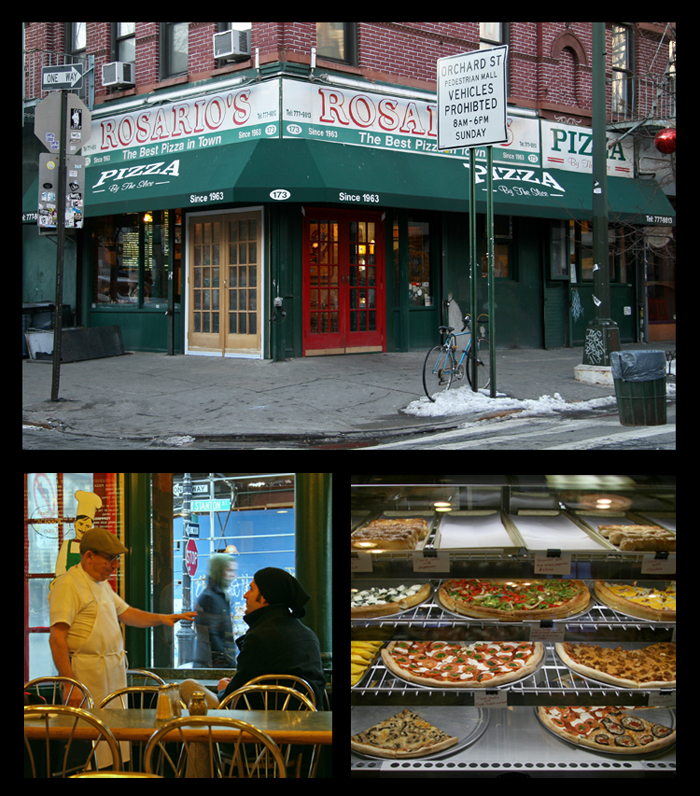 Sunday, after reading about Rosario’s Pizzeria on the Lower East Side, I decided to make a short trip and sample the goods. Located at 173 Orchard Street and Stanton, the awning proclaims “The Best Pizza in Town” and “Since 1963.” So, they get points for authenticity and longevity. However, I was not particularly pleased with their style. The crust was thick and somewhat cakey. Have you ever had thin crust pizza?