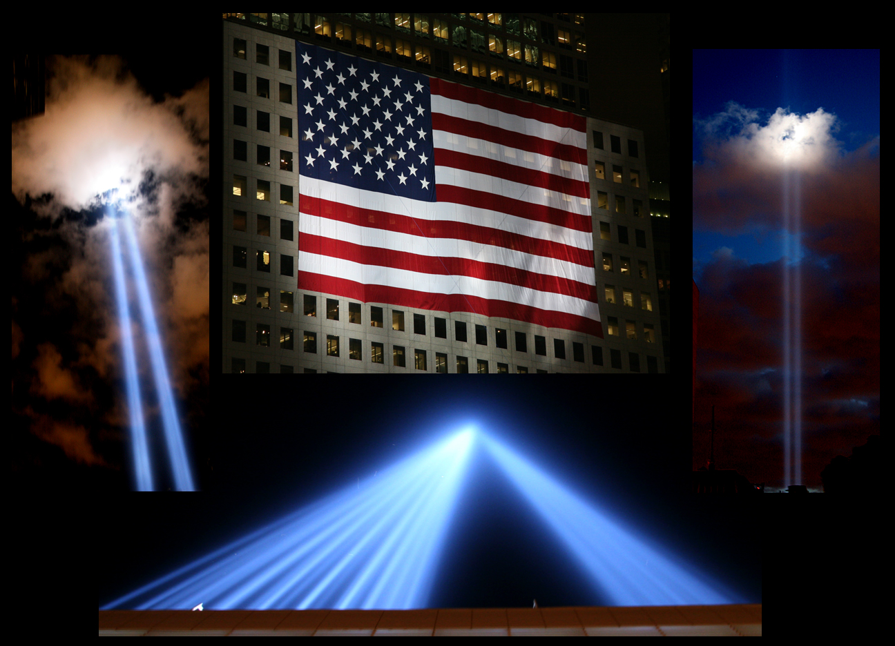 A number of people asked why I put up no photos regarding the events of September 11 on Monday. I did take a number of photos and went to the actual site with a friend. However, I did not bring a tripod (an obvious mistake), and all the photos I took were handheld with long exposures. On reviewing the photos, I felt that they were too poor to post – there were thousands of great photos online – but friends who saw them (including three photographers) felt that I should post the better ones anyway, so here they are as a small collage.