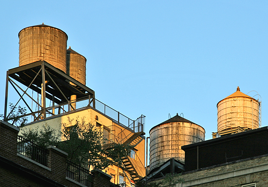 These wood tanks were photographed on University Place. Most of the city’s towers are exposed, and some have them covered with elaborate cupolas. Like many things in the city, there has been a romanticization of the water tank – in Tribeca, tanks are considered a decorative element. The ultimate validation of tank worship? In 1998, an art project was funded called Water Tower, now part of the Museum of Modern Art’s permanent collection…