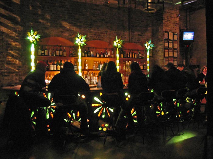 wow, I like the bar with illuminated bottles, how creatively bohemian.