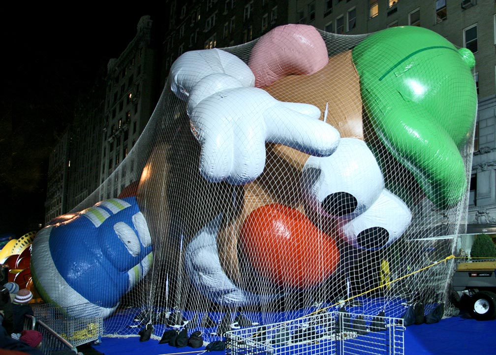 The balloons are lined up on both sides of the Museum of Natural History (77th and 81st Streets). The inflation team consists of volunteers from Macy’s as well as students from Stevens Institute of Technology, in Hoboken, New Jersey, where the balloons and floats are designed and built. If you go, be forewarned. For those uninitiated to NYC crowds, it can be a harrowing experience. Or fun, if you can go with the flow…