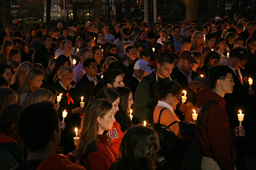 This is the candlelight vigil which took place last night in Washington Square Park to honor the victims, families, and friends of those affected by the Virginia Tech massacre last Monday. The vigil was organized by the Greater New York City Chapter of the Virginia Tech Alumni Association (Manhattan Hokies). All were welcomed to attend. I will not recount the details of the event, as there are better sources than this site for those interested. My condolences to all those affected by the tragedy…
