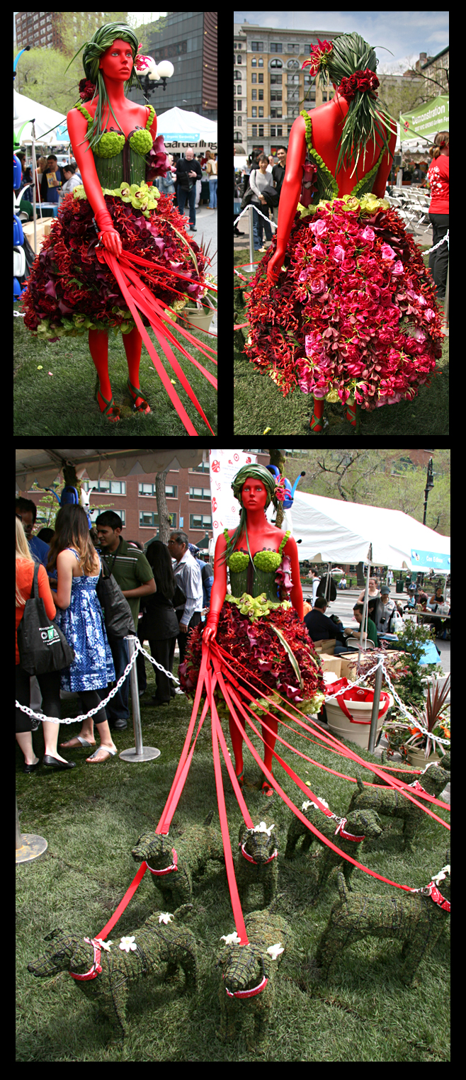 Yesterday was the NYC GROWS Garden Festival, which was held in Union Square. This event was NYC’s celebration of National Garden Month. Our lady in the photo was created by Target, who sponsored the event. She was a big hit, with visitors taking photos of each other with her as backdrop. I thought she was beautifully done, with all manner of plants/flowers so cleverly used and her bevy of topiary dogs. Click here for more photos.
