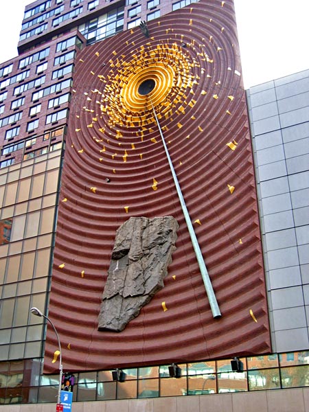 This huge art wall has been an enigma for myself and most New Yorkers and visitors. The piece, Metronome, was commissioned by the developers of the building at One Union Square South, created by Kristin Jones and Andrew Ginzel (who won a national competition), and inaugurated in 1999. It is an investigation of time containing nine elements – every element has a specific meaning.