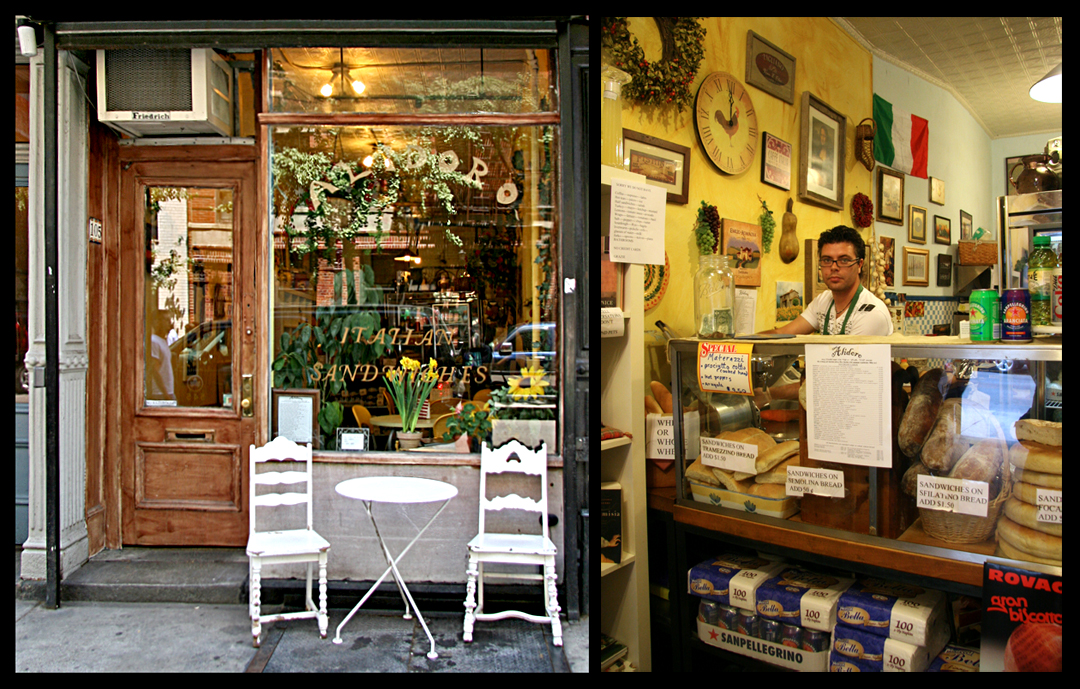 Do you want to know a real NYC secret? Alidoro. This tiny sandwich shop at 105 Sullivan Street is one of the best in NYC. I was introduced to it in 1991 by an Italian friend and neighborhood resident. There is an area of the South Village and neighboring SoHo which has a number of Italian residents and businesses, such as Rafetto’s, Vesuvio Bakery, Villa Moscioni, Tiro A Segno, Joe’s Dairy, Faicco’s Pork, etc. This sandwich shop was originally opened in 1986 as Melampo Imported Foods by Alessandro Gualandi, a native of Florence, who had a reputation as one of the most difficult shop owners around (some said grouchy, others said temperamental artiste). You wouldn’t dare ask for any changes or modifications – all of his sandwiches were ordered by name (Julie, Pinocchio, Arzibubo, Geppetto, etc.). I was reprimanded for asking for a little mustard – subsequently, I would take my sandwich back to my office and make adjustments there. Click here for a short review about the old shop and its owner.