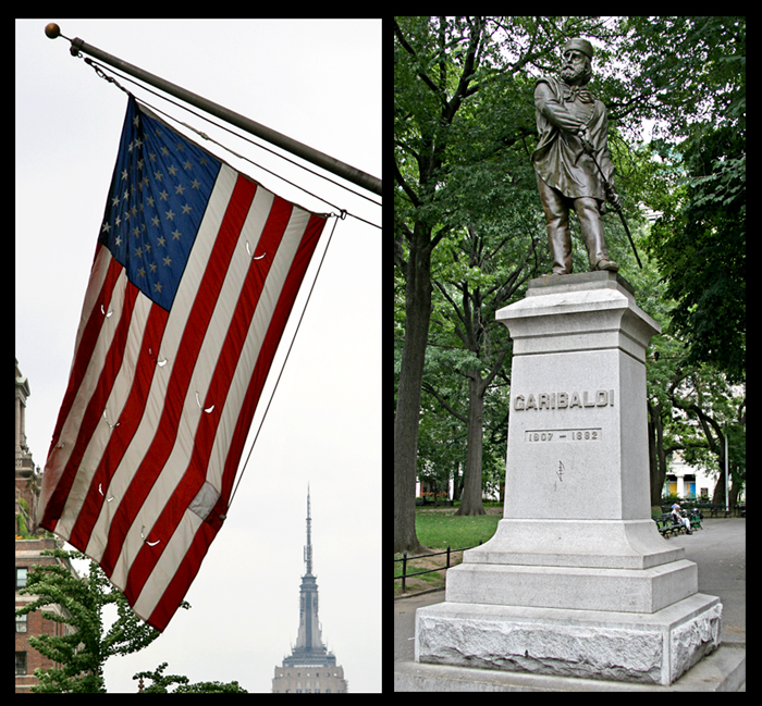 Today is not only Independence Day but also the 200th birthday of Giuseppe Garibaldi – he was born in Nice (Nizza) on July 4, 1807. The statue shown in the photo sits in Washington Square Park. Last night, there was a celebratory concert, and today there is singing of Italian songs during the day.