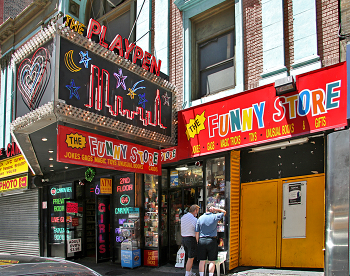 This is a story recently reported by the New York Times, the Daily News, and other local media. The Funny Store, a novelty shop which has been in business in the Times Square area for 50 years, is closing on July 31, with a new residential development of luxury condominiums going up in its place. The shop was originally opened by brothers Irving, Mike, and Lou Tannen (of Tannen’s Magic fame). The current owner, Arnold Martin, has had the store since 2004. It has been frequented by many celebrities and has been a favorite of the Letterman show. The Funny Store sells gags, jokes, magic tricks, games, and novelties, with all the classics such as hand buzzers, rubber chickens, whoopee cushions, and their most popular item – fake dog excrement.