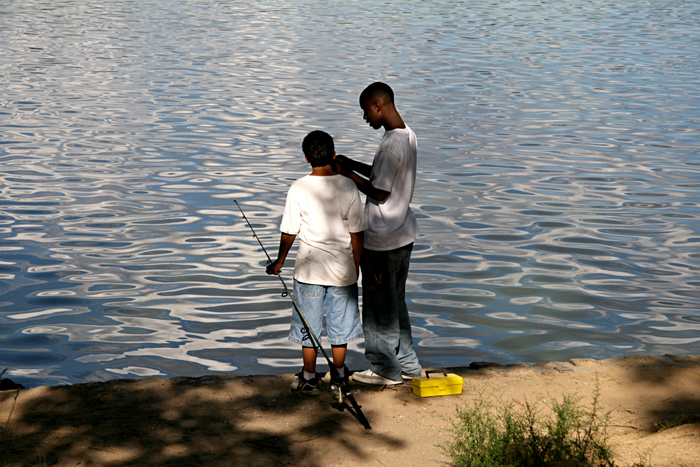 This was the perfect summer image: two young boys standing lakeside preparing to fish in dappled late afternoon light. The scene made me feel like I was in the archetypal small town – transported to Mayberry. A Saturday or Sunday afternoon in the park is the perfect respite from the hustle and concrete of the big city – the Tuileries gardens of Paris, Hyde Park in London, or Sheep Meadow in Central Park.