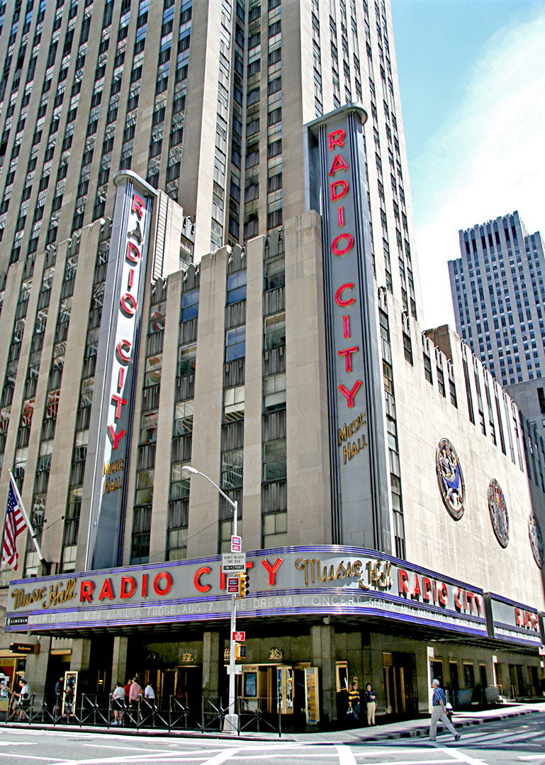 This is Radio City Music Hall, one of NYC’s best known attractions, top tourist destinations, and part of the Rockefeller Center complex. It has a roster of film debuts and a history of stage shows with luminaries such as Frank Sinatra, Ella Fitzgerald, Linda Ronstadt, Bill Cosby, Liberace, Sammy Davis, Jr., Count Basie, Itzhak Perlman, Ray Charles, B.B. King, et al.
