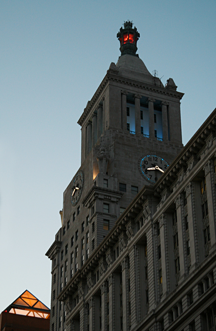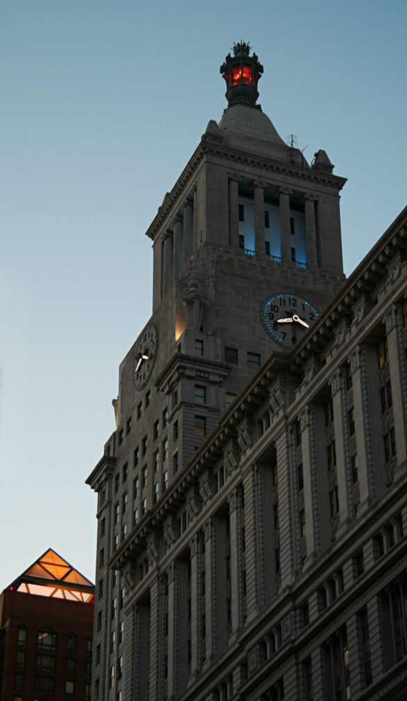 ConEd is the product of acquisitions and mergers of more than 170 companies. The office buildings of ConEd are a assemblage of structures built at different times, starting with a 12-story building designed by Henry Hardenbergh in 1910 at 15th and Irving, culminating in the 26-story building (seen in the photo) designed by Warren and Wetmore, known for their Beaux-Arts work such as Grand Central. The limestone clad building is quite prominent in the night skyline of NYC with its numerous illuminated features: a 3-story tower with Doric colonnade, four clock faces, and a 38-foot bronze lantern. This is one of a handful of iconic Manhattan buildings which can be seen from many vantage points, along with the Met Life Tower, the New York Life Tower, the Chrysler Building, the Empire State Building, and the Zeckendorf Towers. Please learn your illuminated buildings – there will be a quiz 🙂