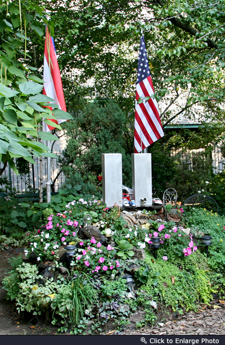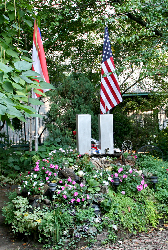 I came across this memorial with a friend in the 9th Street Community Gardens on Avenue C. We liked the simple, homemade assemblage. It makes a thoughtful statement without fanfare. Today, I let the photo speak for itself.