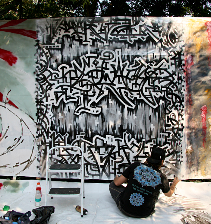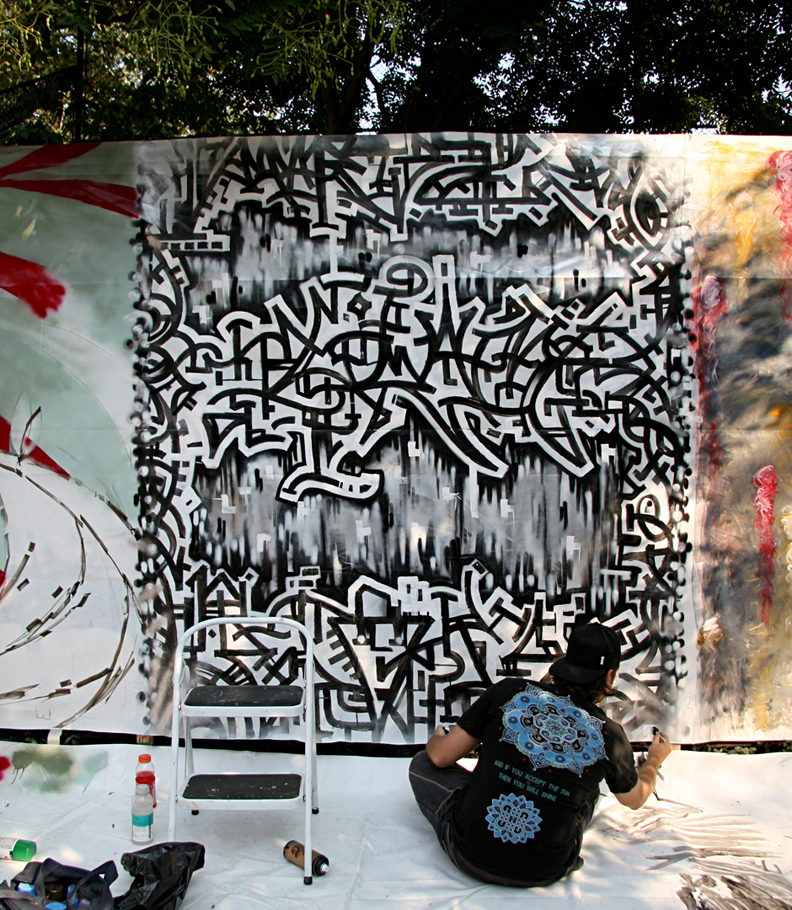 A myriad of neighborhood establishments participate: bars, cafes, clubs (such as ABC No Rio and the Bowery Poetry Club), galleries, community gardens, theaters, a museum (Fusion Arts), and places difficult to categorize, such as Bluestockings. The day was calm, however, there was a little altercation with a guy reported to have splattered people with paint (click here)…