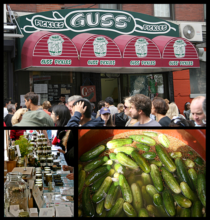 Sunday was the 7th annual New York City International Pickle Day. I’m not sure we need such a day, but apparently picklers feel that they need equal time, and NYC was pickle country at one time. The festival, co-sponsored by the NY Food Museum and the Lower East Side Business Improvement District (LES BID), was held on Orchard Street between Broome and Grand Streets on the Lower East Side, on the same block as famous pickle vendor Guss’ Pickles (update: In 2010, Guss’ Pickles moved to Borough Park, Brooklyn.). There were pickling demonstrations, children’s activities, tours, exhibits, music, book signings, and, of course, pickles and pickled products for sale and as free samples.