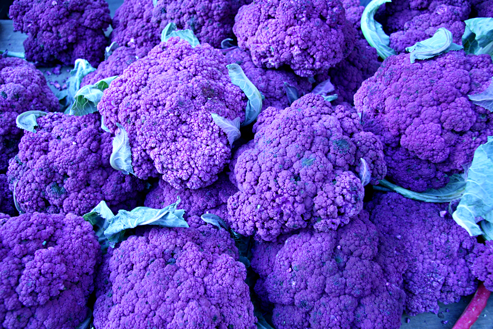 About the photo: I discovered this table of purple cauliflower while strolling through the Union Square Greenmarket with a friend. I had no intention of doing any photography, since I have posted numerous times regarding Union Square: the park itself, the Greenmarket, the Gandhi sculpture, restaurants, and the architecture/buildings in the immediate area. But when we happened upon this display, we were so awed by the color that I felt compelled to shoot and share…