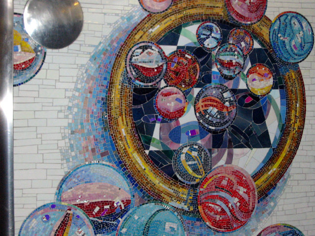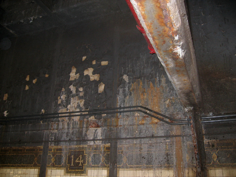 ]Some stations have been renovated and art commissions have been installed (here is a mysterious mosaic of a child’s game of marbles, underground at 42nd St and 7th Avenue). Some stations have never been renovated or are poorly maintained (like this grungy crypt at 14th St. and 7th Avenue) If it weren’t for the trains, NYC could not exist. People who live in the outer boroughs of Queens, Brooklyn, the Bronx, and Staten Island all use public transportation to get to their jobs; most in Manhattan do also. Even so, there is a particular brand of New Yorker who prides him/herself on never setting foot in the trains. They take cabs or refuse to lead the kind of life that deals with rush hours…