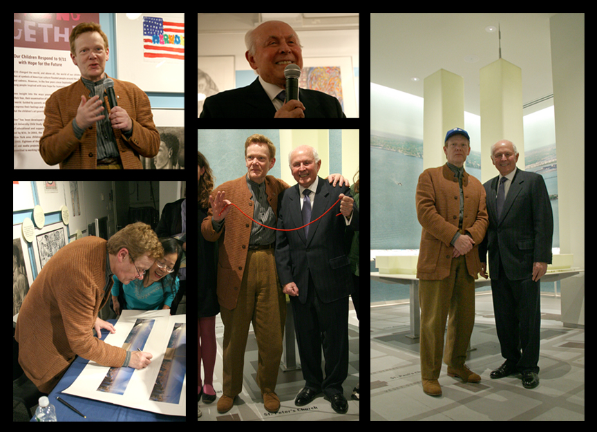 Yesterday afternoon, I was privileged to attend a public program at the Tribute World Trade Center with Guy Tozzoli and Philippe Petit entitled A Conversation About Bold Imagination. The program was held in a small cozy room with 75 or so attending – it had the feeling of an intimate family gathering. I had the sense that everyone there knew more about one or both of these men than would be typical people. The audience was mesmerized – I know I was. I have written before of Philippe in Artiste Extraordinaire.
