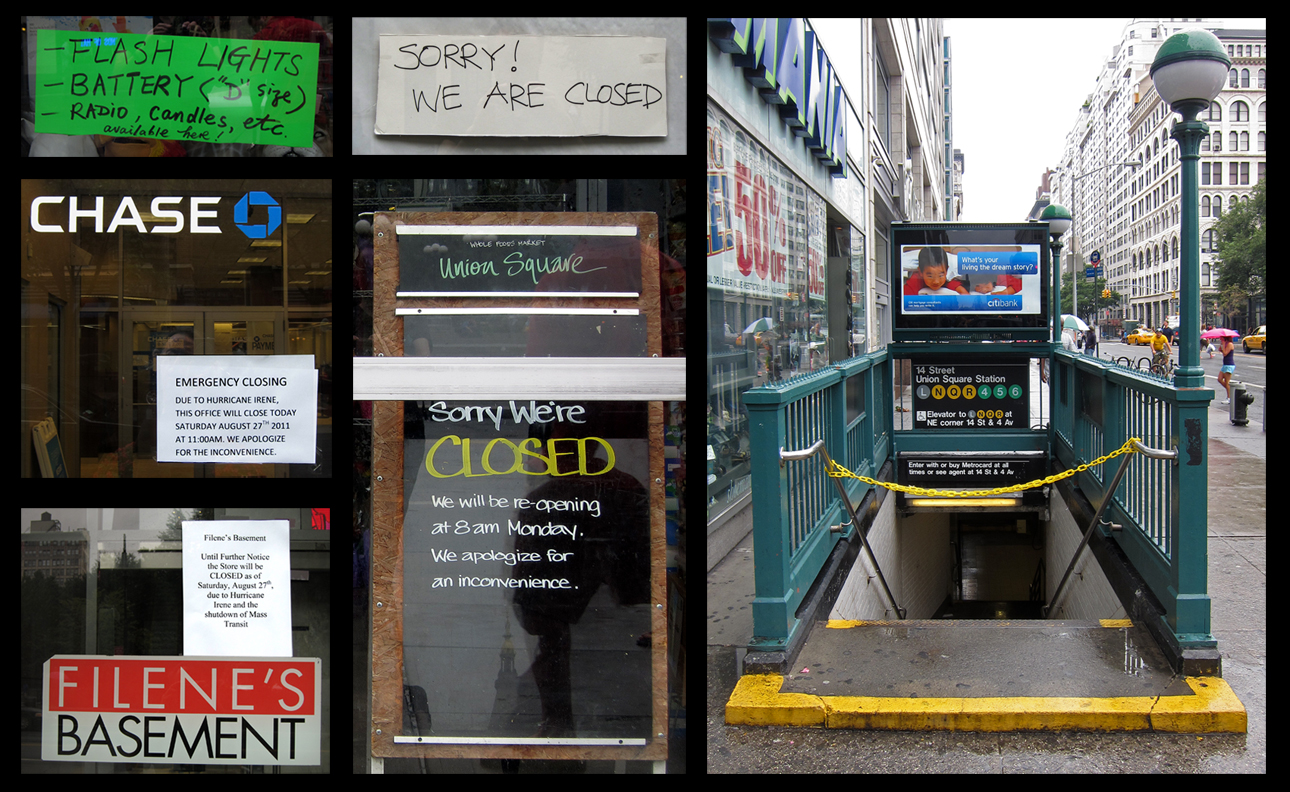 The city came well prepared for this storm, although many felt that the level of preparation was overdone. Subways and buses were shut down. 370,000 residents were placed in mandatory evacuation zones. By Sunday, the city was the quietest that I have ever seen. With workers without public transportation, business openings were impossible.