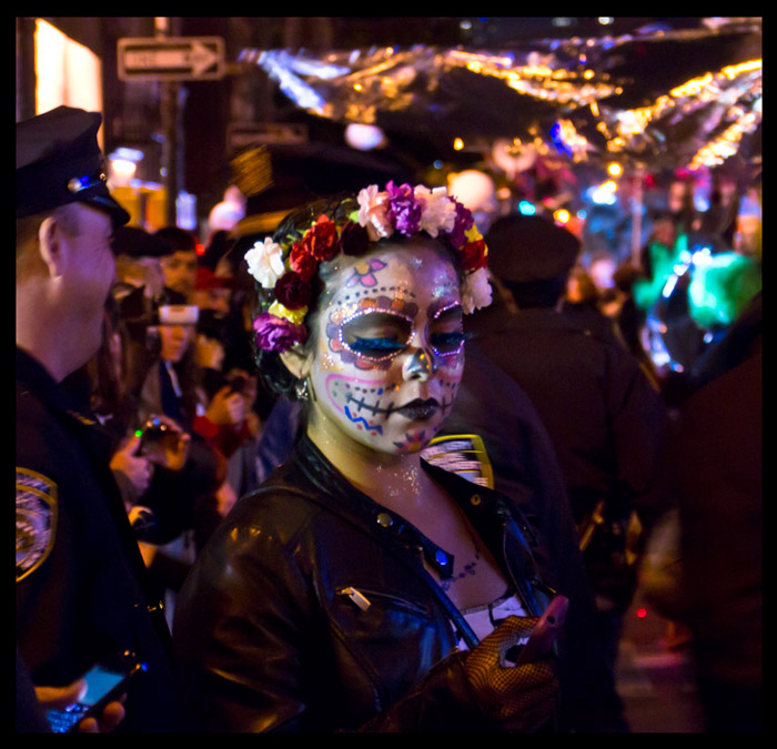 We live for the New York City Halloween parade every year. This photo is wonderful! The costumes get better and better every year. We saw a lot of Dia de los Muertos themed costumes this year. They really were brilliant!